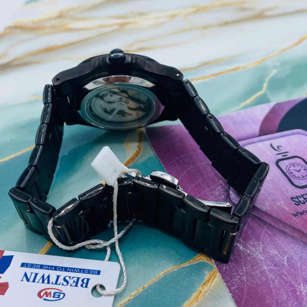 Command attention with the BSTN Automatic Watch for Men, featuring a stunning skeleton dial that showcases precision engineering in style. The bold black metal strap adds a touch of power and elegance, making it perfect for men who appreciate fine details and timeless sophistication. From boardroom to night out, this watch keeps your look sharp and refined.