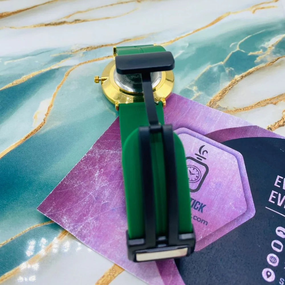 Elevate your style with the UNVRSE PONT, a perfect blend of elegance and modern design. Featuring a sleek black dial with golden accents, this watch adds a touch of sophistication to any outfit. The durable green strap ensures all-day comfort, while the gold-tone stainless steel case enhances its premium look.